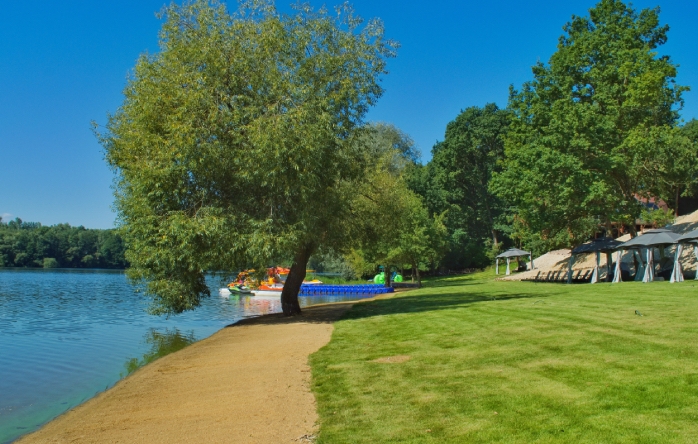 Jedinečná pláž u přehrady Skalka – kombinace písečné a travnaté části.