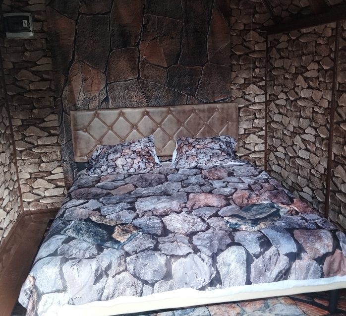 Chatka s motivem kamene, kde doba kamenná stále neskončila.